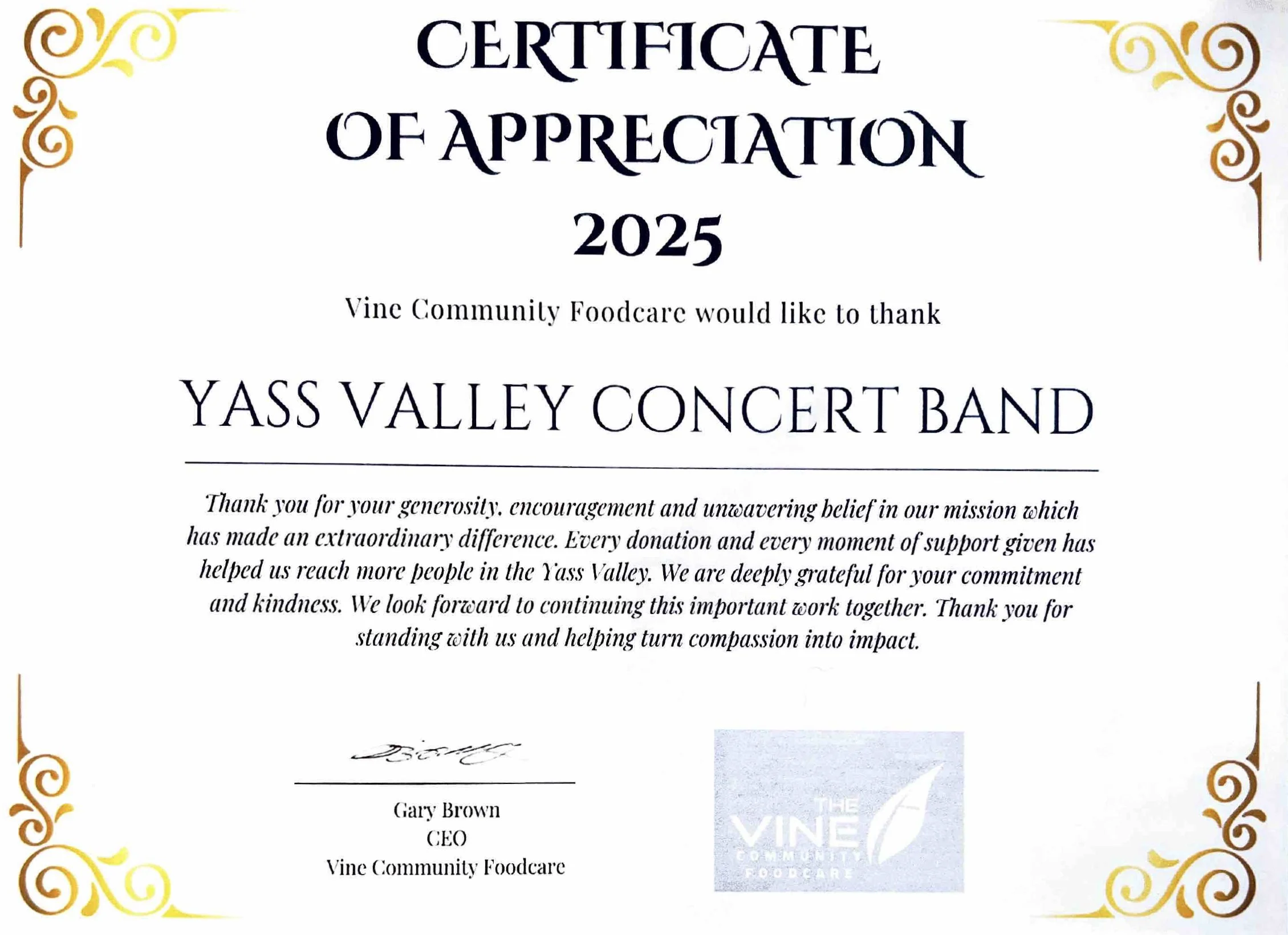 The concert raised over $5,000 for our nominated charity, Vine Community Food Care in Yass.